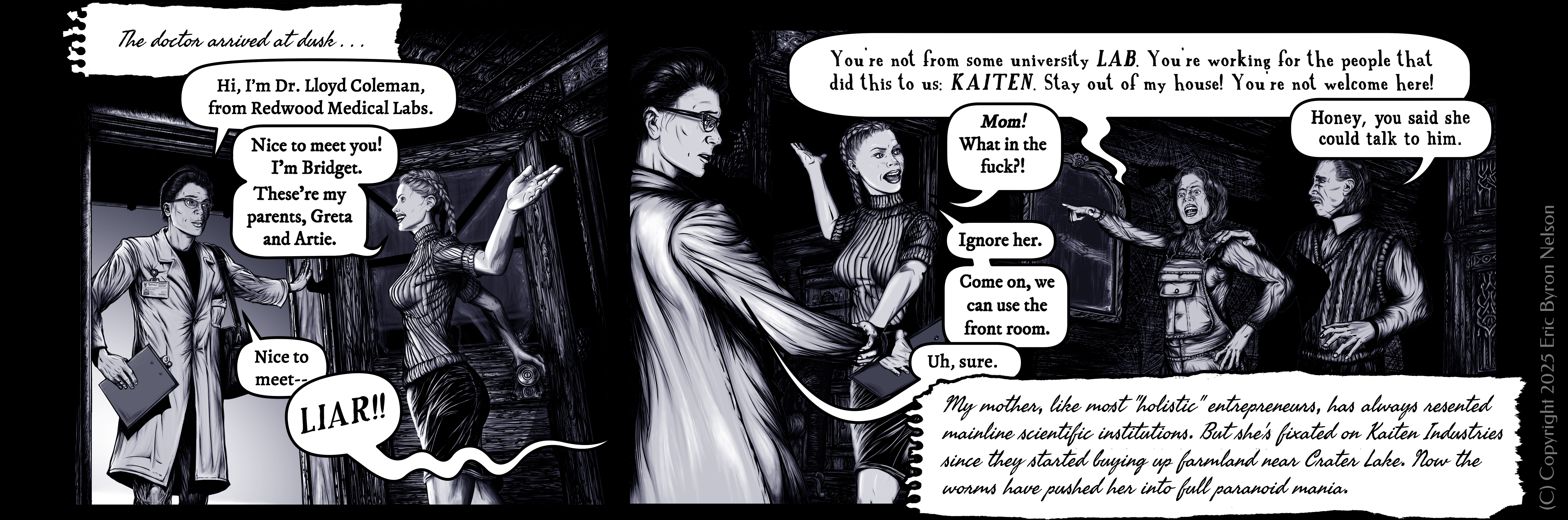 ON THE ELEVENTH NIGHT OF HALLOWEEN, I am posting this, the sixth panel of my horror comic, Writhing Harvest